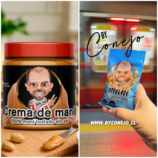 Además del nombre, el uso de imagen que se denuncia está graficado en el envase de "Maní By Conejo". Pese a no haber relación contractual, el envoltorio muestra una caricatura que, evidentemente, está inspirada en la figura de Martínez.