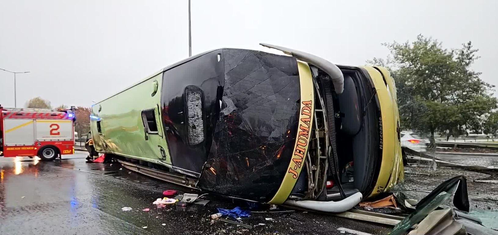 El suceso ocurrió cerca de las 6:30 horas, cuando el vehículo de transporte, perteneciente a la empresa J Ahumada, terminó completamente volcado sobre la calzada, con importantes daños estructurales, según mostraron las imágenes captadas por cámaras de Meganoticias.