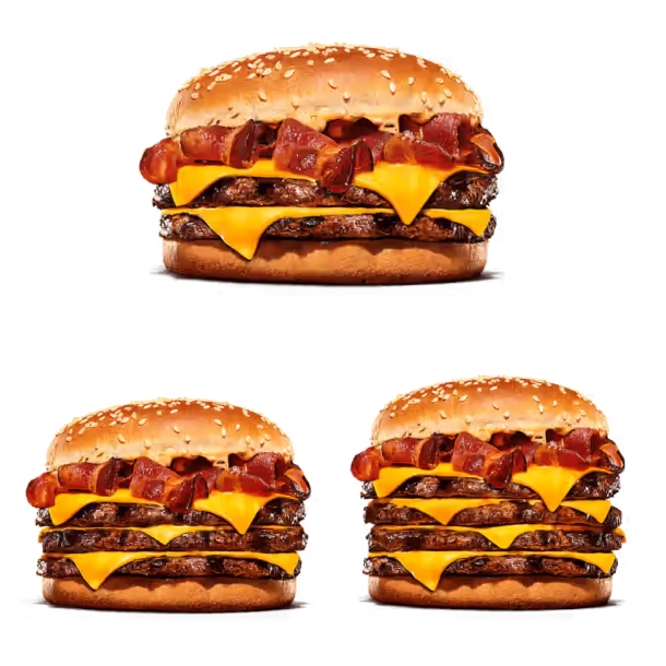 - Stacker Triple: tres hamburguesas de carne a la parrilla más el resto.