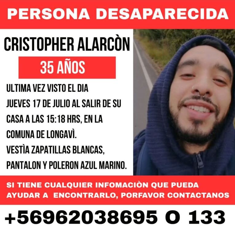 Ocho días lleva desaparecido Cristopher Alarcón Quirilao, joven padre de 35 años del que se perdió todo cuando esperaba locomoción en Longaví, región del Maule, para ir a la reunión de apoderados de su hija en la vecina ciudad de Linares.
