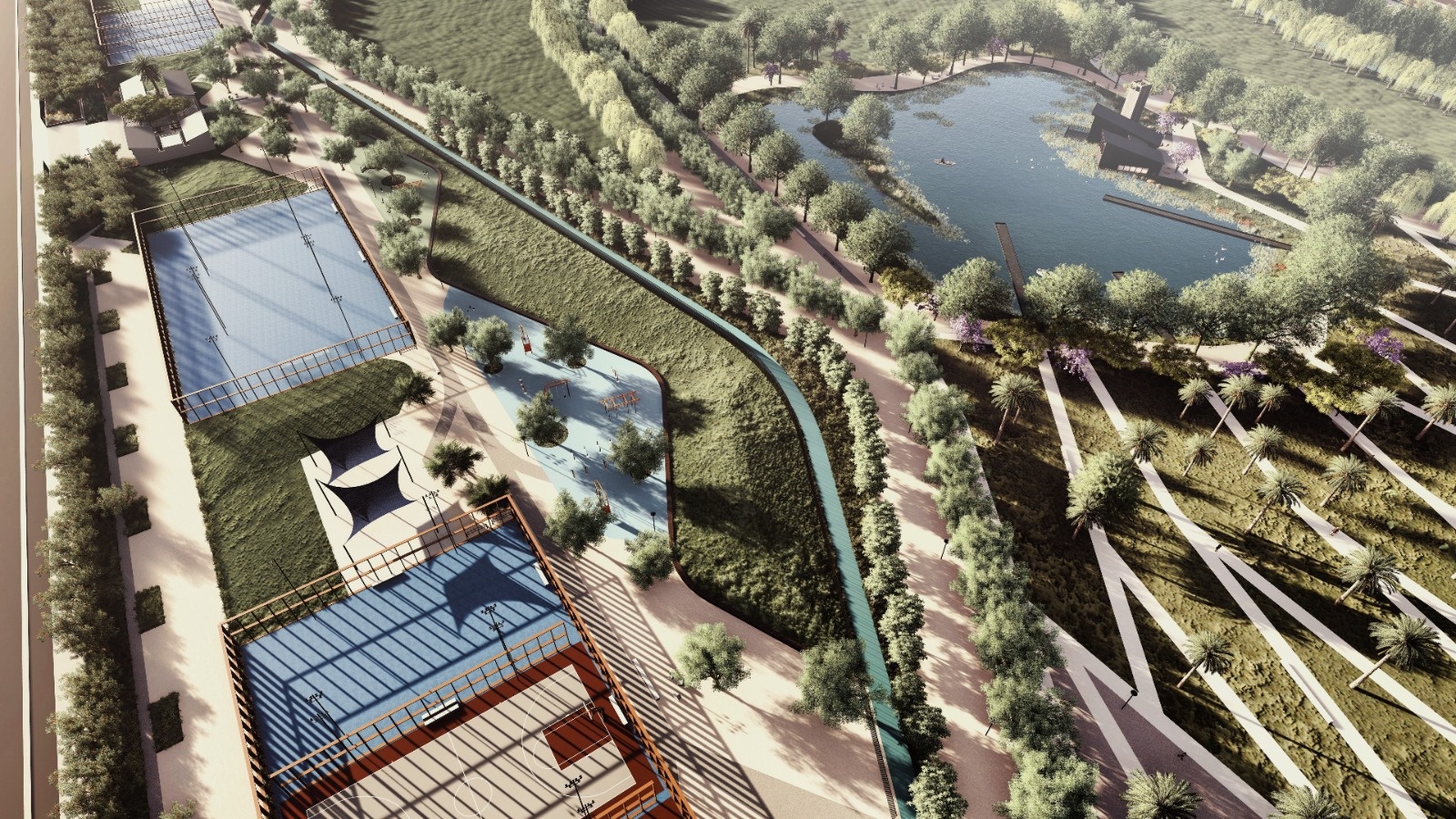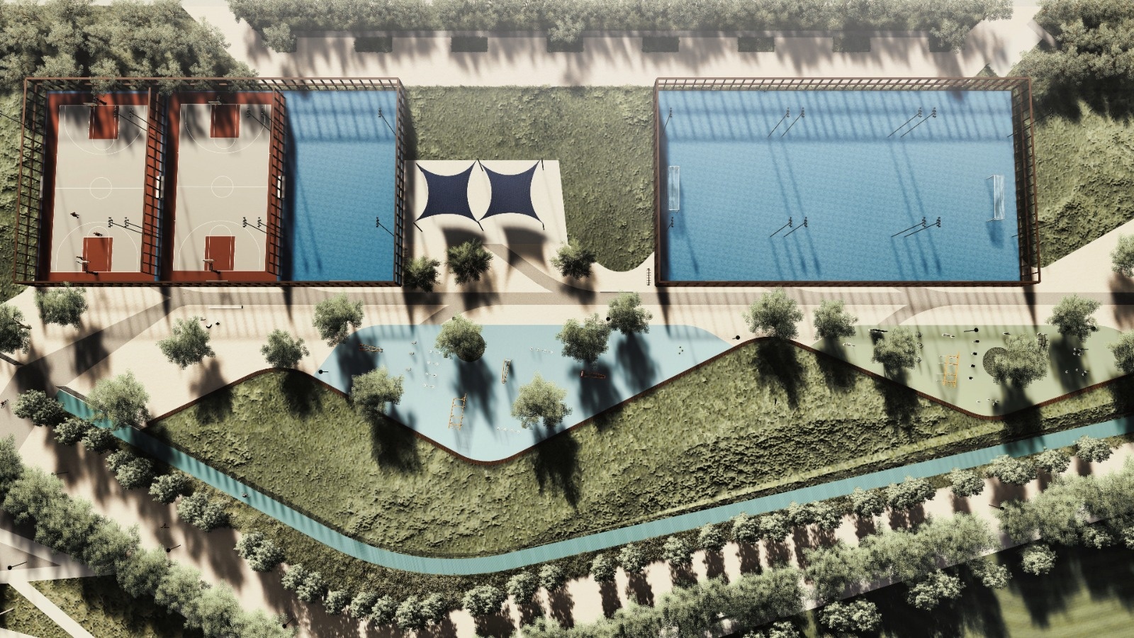 Dentro del equipamiento de la primera etapa destaca la presencia de calistenia, canchas de futbolito, básquetbol, voleibol, además de un camarín deportivo.