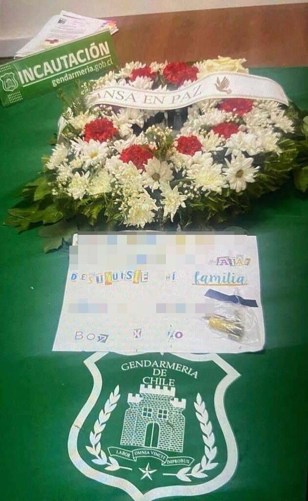 A través de un comunicado, la institución partió detallando que, durante el medio día del 29 de agosto, "sujetos habrían lanzado hacia el interior del recinto carcelario una corona de flores que además contenía cuatro municiones de distinto calibre con amenazas de muerte explícitas en contra de la jefatura de unidad".