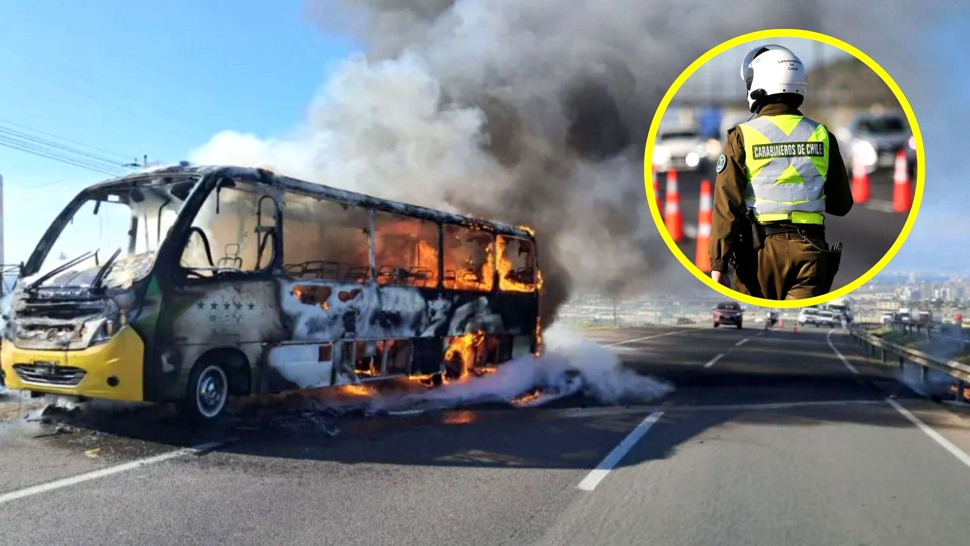 Una insólita emergencia ocurrió el martes pasado en la zona centro norte de Chile: un microbús se quemó por completo debido a un colchón que cayó en una transitada ruta en Coquimbo.