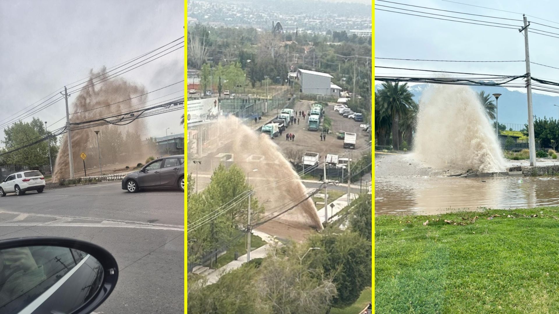 Rotura de matriz inunda la calle y causa desvíos en el límite entre La Reina y Las Condes
