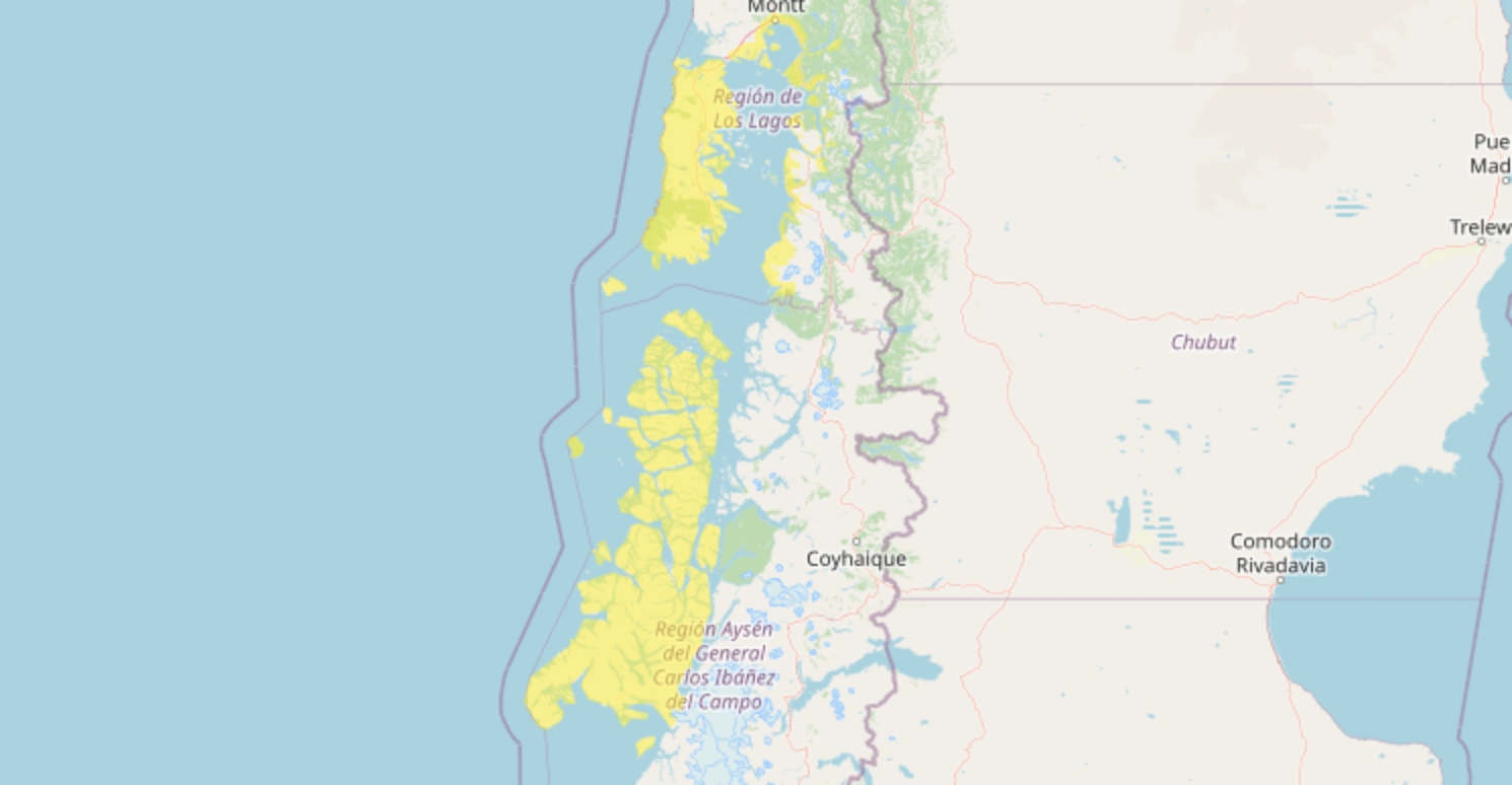 El fenómeno meteorológico se presentaría en la región de Los Lagos, específicamente en Chiloé y el litoral interior, así como en la región de Aysén, pero solo en el sector insular norte.
