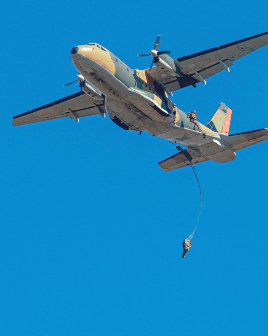 El medio infodefensa.com consignó que los paracaidistas efectuaron saltos desde un avión de transporte Airbus Defence and Space CN235-100-M de la Brigada de Aviación Ejército.