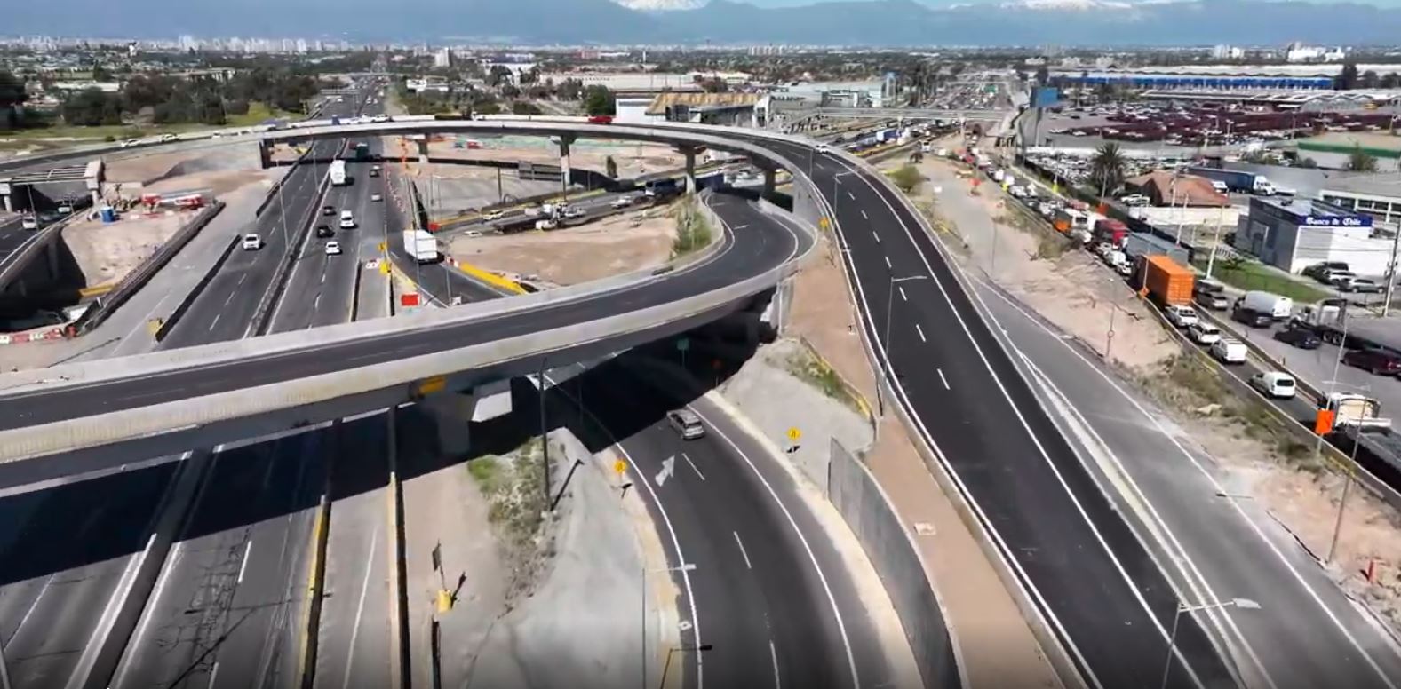 Añadió que, aunque faltan etapas por habilitar, el nuevo enlace tipo “molino” ya está transformando la movilidad en el sector poniente de Santiago.
