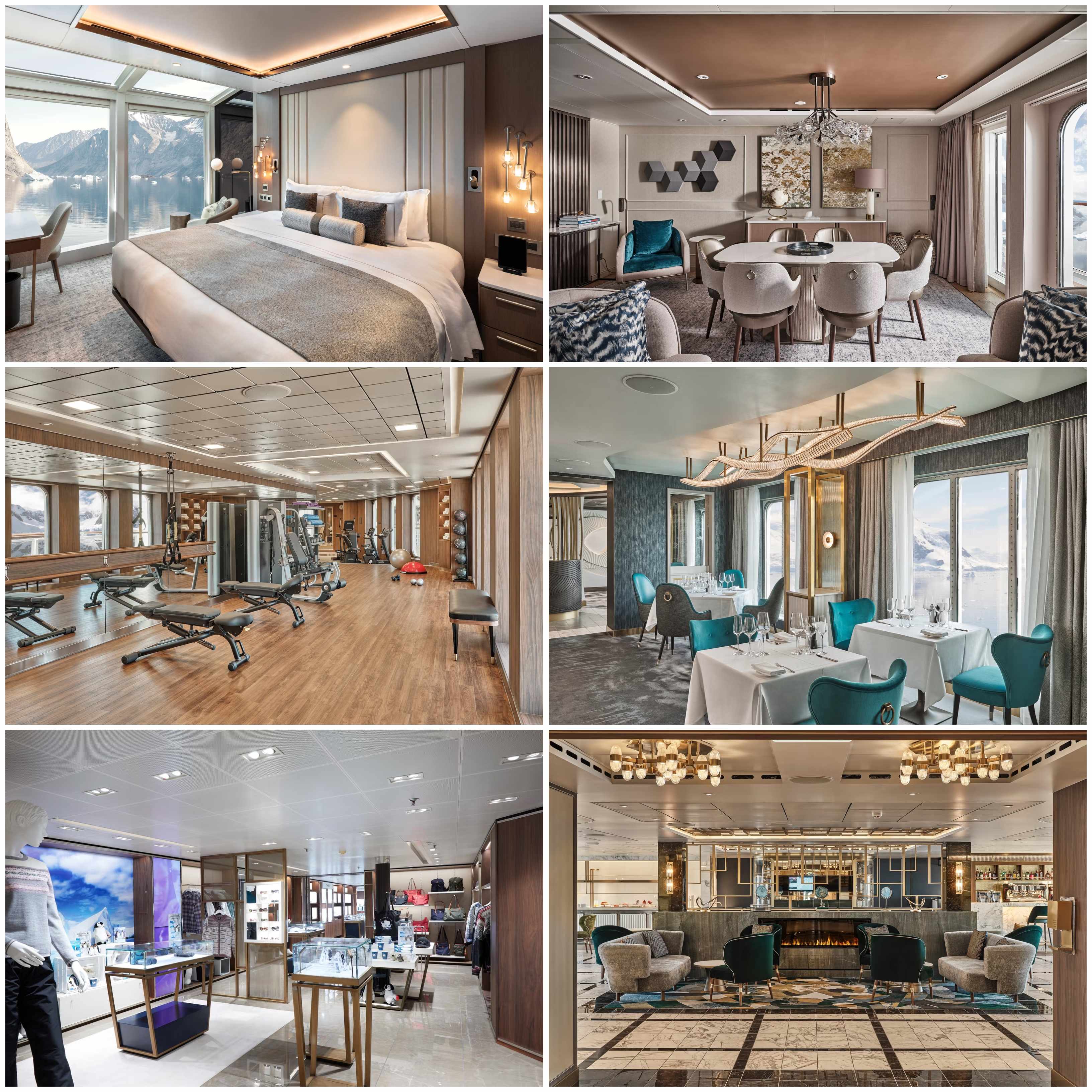 Eso sí, las suites más grandes son las Grand Suites y la Owner's Suites, las que cuentan con jacuzzi interior para dos personas y ofrecen fantásticas vistas desde la proa del barco. Además, pueden conectarse con las Penthouse Suites contiguas para crear alojamientos con una superficie interior de 208 metros cuadrados.