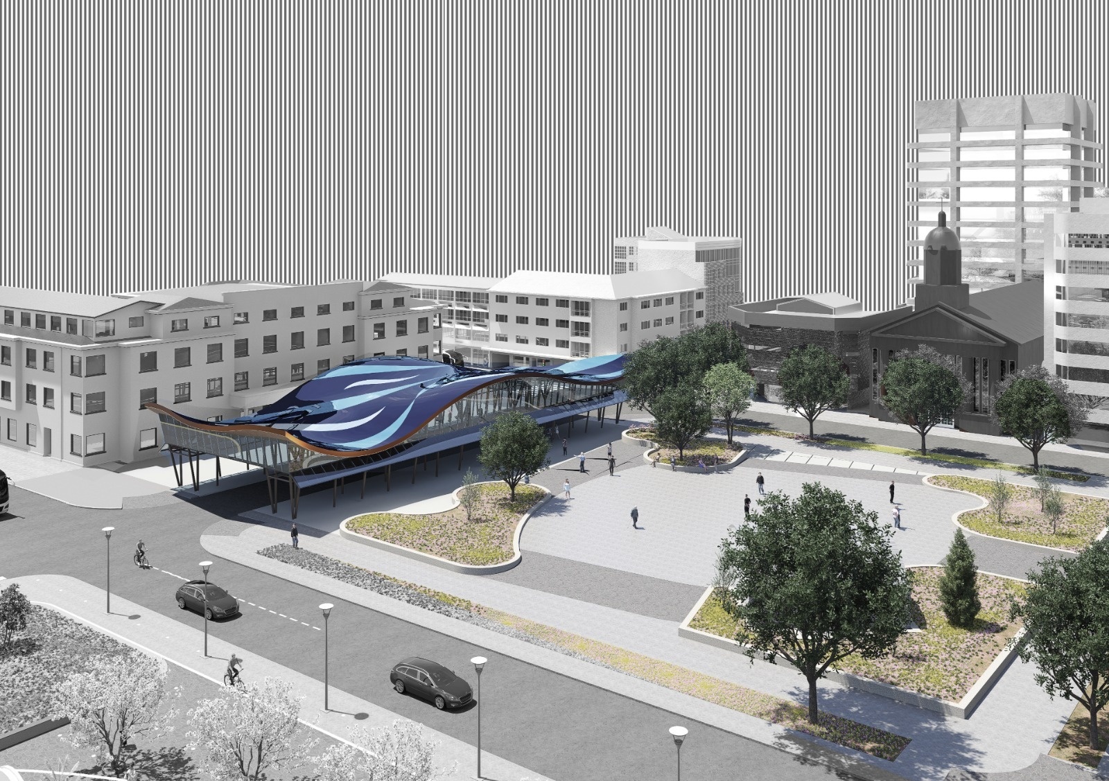En total será una cuadra de 900 metros cuadrados ubicada a un costado de la Plaza de Armas, la que tendrá un techo ondulado de acero, el que simula ser las escamas de un pez. También contará con muros vidriados que podrán cerrar o abrir el recinto a la voluntad
