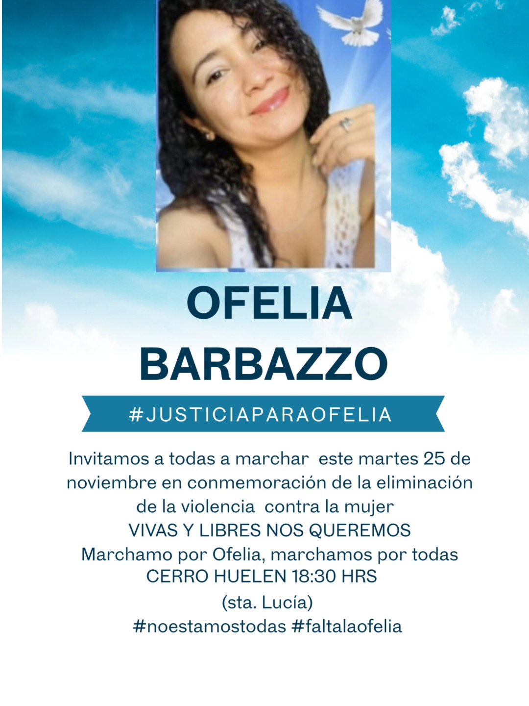 Este martes 25 de noviembre, en el marco del Día Internacional de la Eliminación de la Violencia contra las Mujeres, amigas y cercanos de Ofelia marcharán en Santiago exigiendo justicia por su muerte. Se trata de un acto de memoria por quien también era madre y una querida abuela.