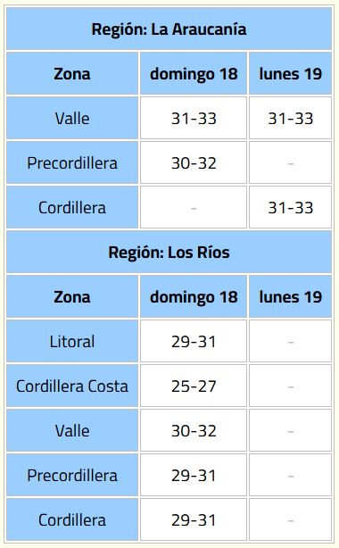 La Dirección Meteorológica de Chile (DMC) emitió este jueves un aviso por altas temperaturas con máximas de hasta 33°C, a desarrollarse en dos regiones del país durante los próximos días.
