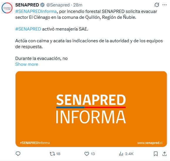 Ir a la siguiente notaRevisa las alertas SAE que ha emitido Senapred