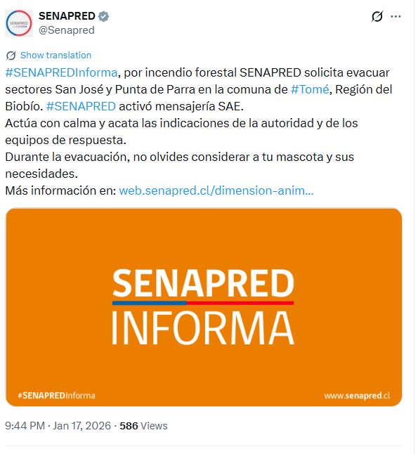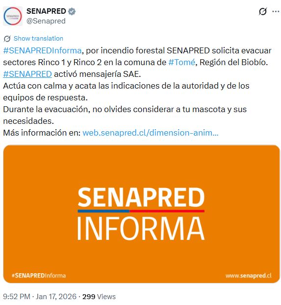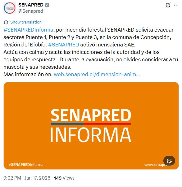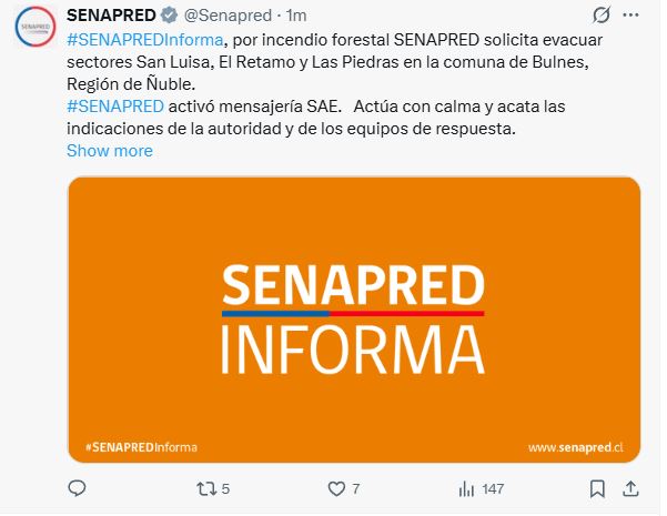 Esta nota se actualizará constantemente con las diferentes alertas SAE que emita el organismo. Asimismo, es importante recordar que la evacuación debe realizarse de manera tranquila y acatando las indicaciones de las autoridades pertinentes.