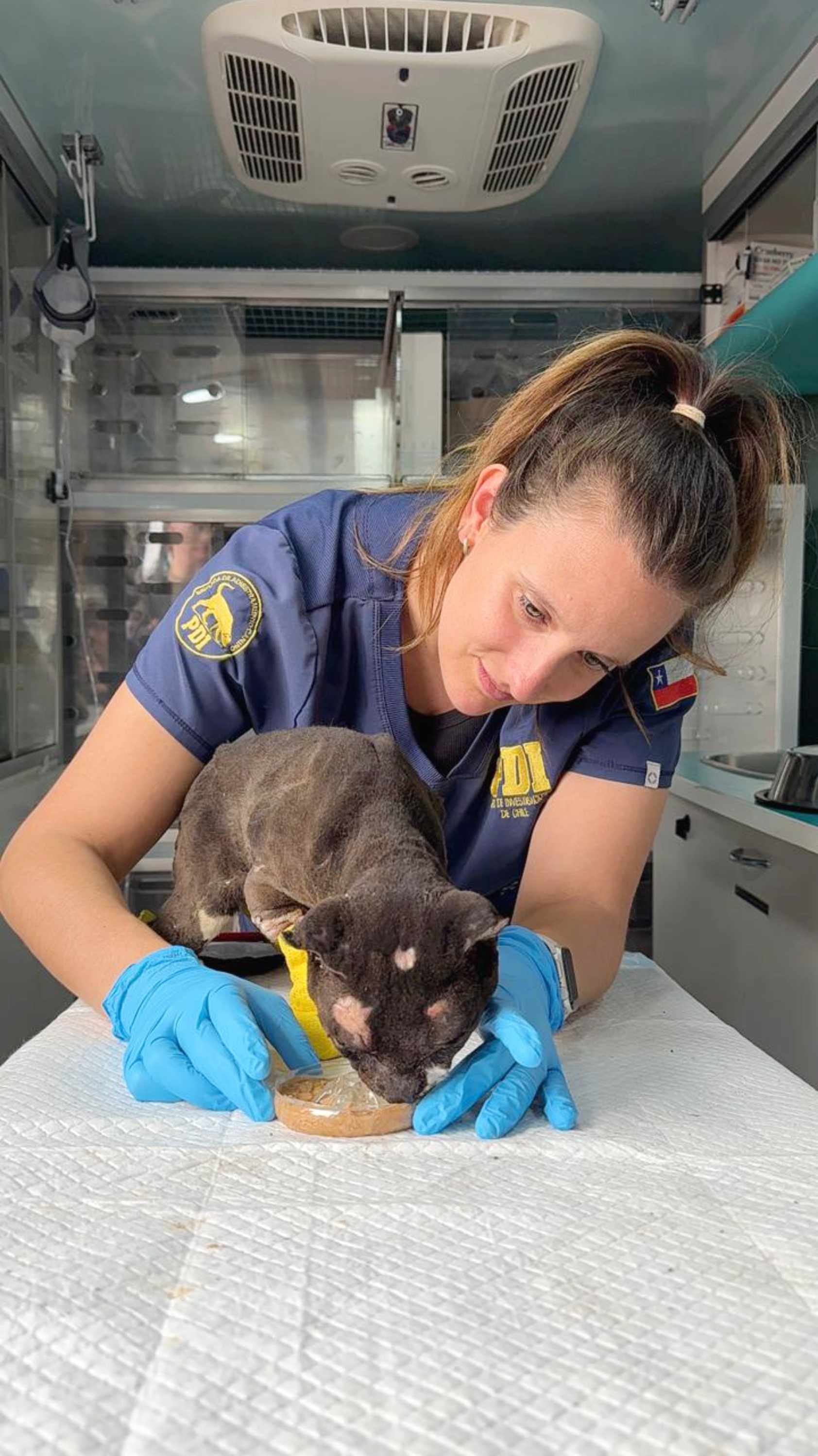En el caso de Lirquén, sector de la comuna de Penco que se ha convertido en uno de los más devastados por el fuego, veterinarios de la Brigada Canina han activado una zona de atención para entregar los primeros auxilios.
