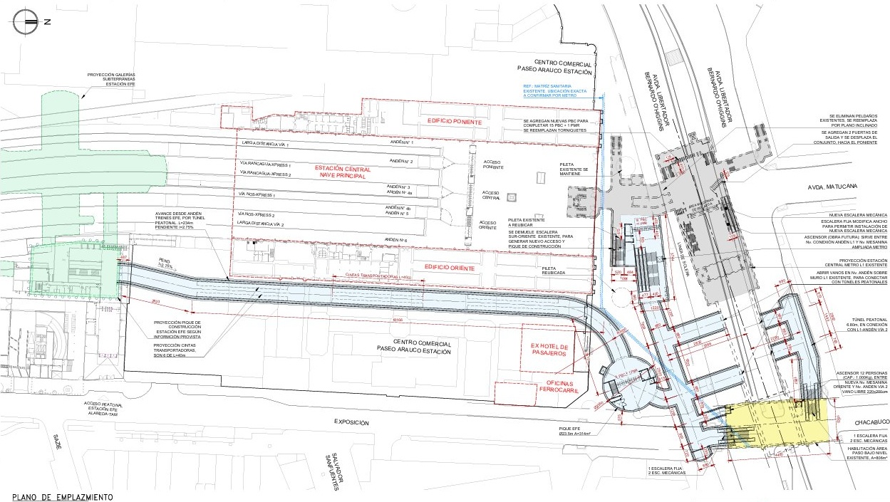 Ante este panorama, Metro ideó un plan para ampliar su estación de la Línea 1 y así aliviar el flujo de pasajeros y generar una conexión expedita con la Estación Central subterránea que EFE construye para el TAM.