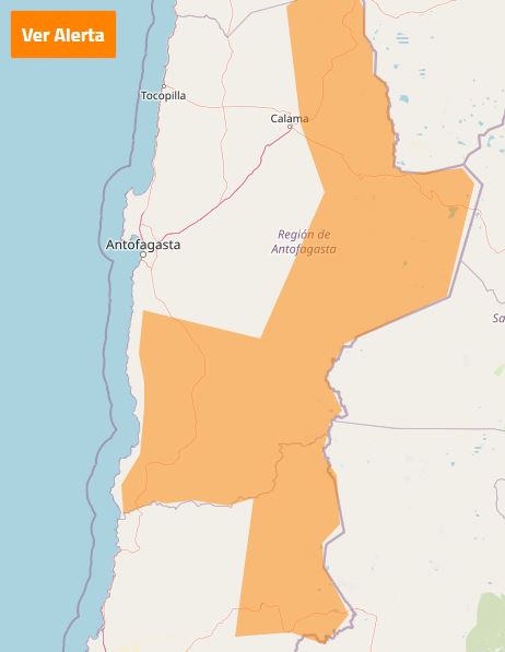 Ir a la siguiente notaEn específico, el fenómeno afectará a la Cordillera Costa, Precordillera Salar y Precordillera Occidental de la región de Antofagasta y al tramo norte de la Precordillera y Cordillera de Atacama.