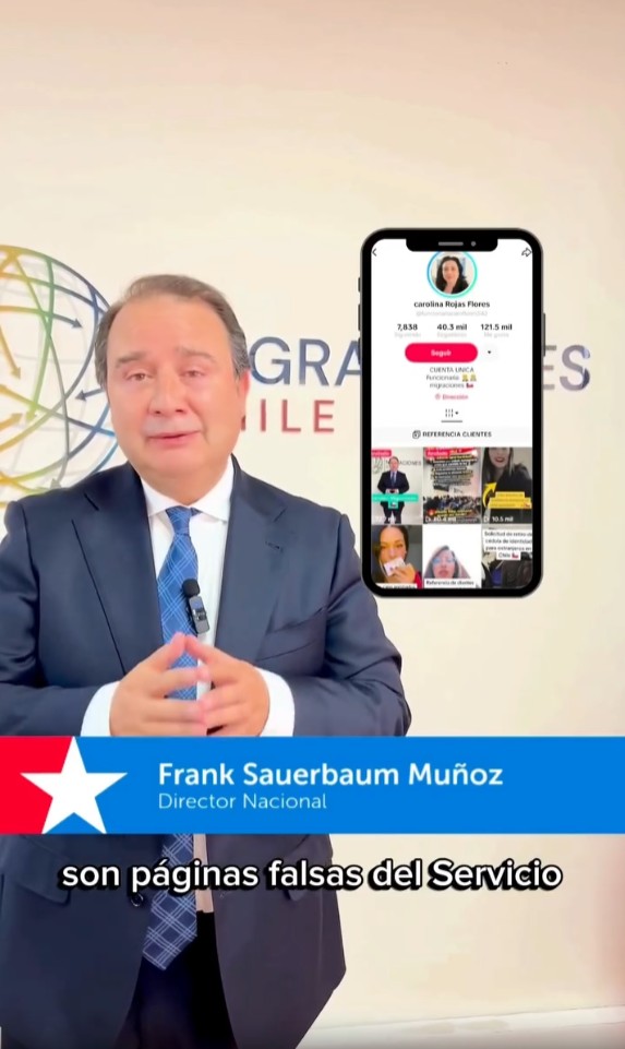 El Servicio Nacional de Migraciones (SERMIG) alertó sobre una estafa que circula en redes sociales, especialmente en TikTok, donde ciberdelincuentes simulan ser la Directora Regional Metropolitana, Carolina Rojas, para realizar cobros indebidos en trámites migratorios y difundir información falsa.