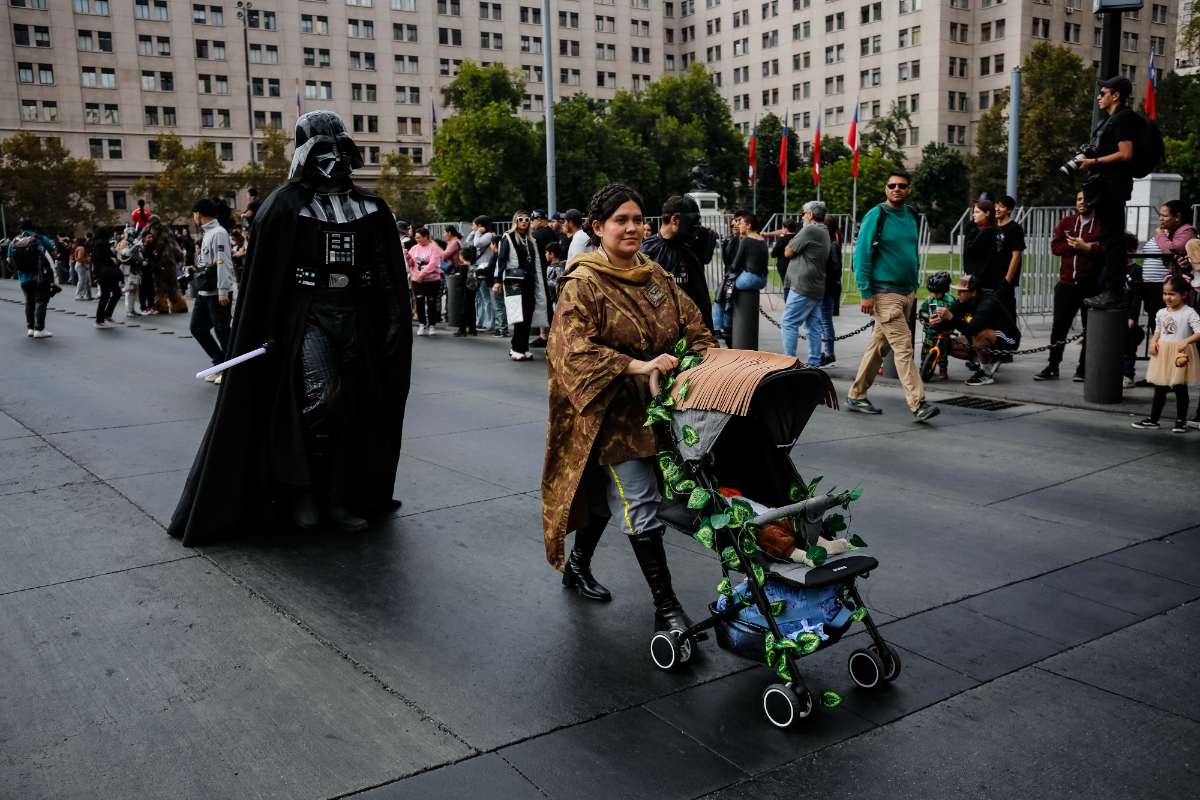 El recorrido se inició en las cercanías del Metro Universidad de Chile y avanzó por la Alameda hasta Plaza Los Héroes, en medio de aplausos, fotografías y la curiosidad de transeúntes que se encontraron de sorpresa con jedis, sith, droides y criaturas del universo de Star Wars caminando por la ciudad.