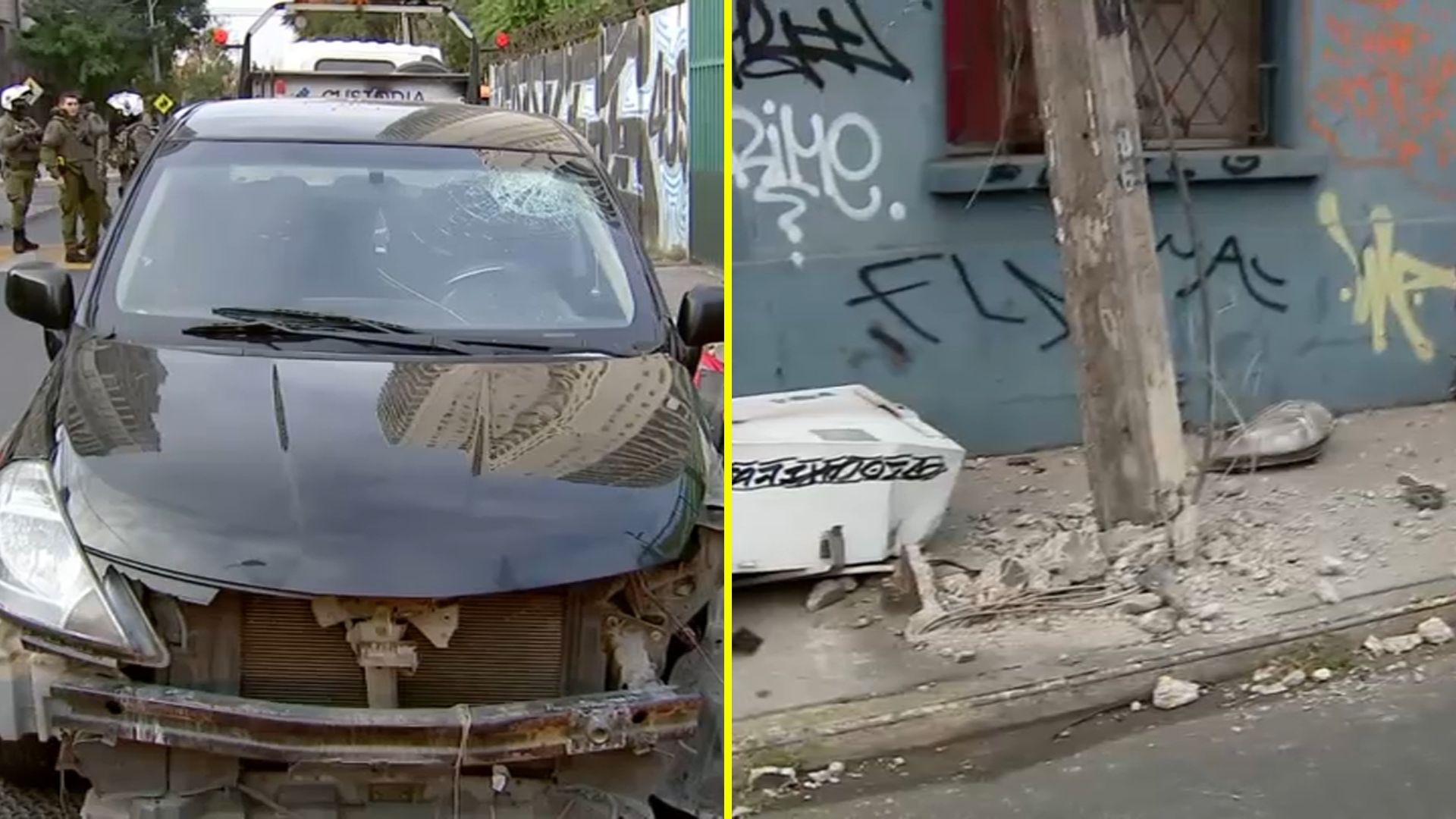 Conductor ebrio se queda dormido, circula contra el tránsito y choca contra poste antes de intentar huir en Santiago Centro