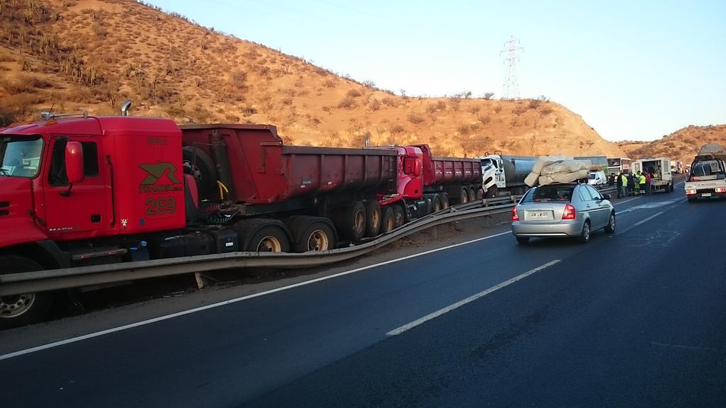 Preliminarmente se informa de siete camiones en una colisión en cadena en dirección a Santiago y que habría causado solo lesiones en los ocupantes de los vehículos de carga.