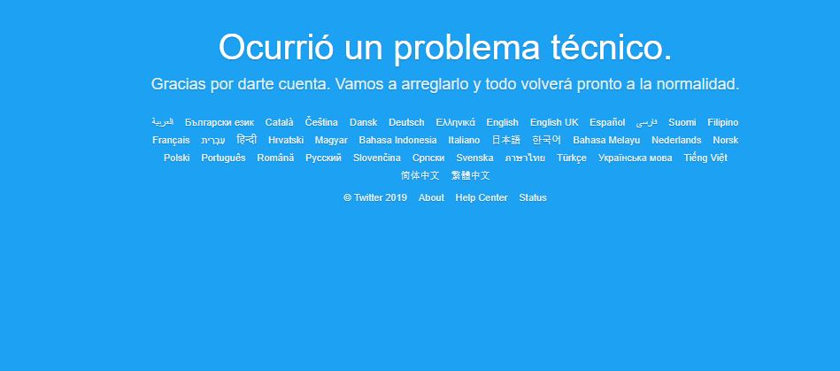 Durante la tarde de este jueves, la red social Twitter experimentó la caída de su servicio, debido a un "problema técnico", según informa la empresa.