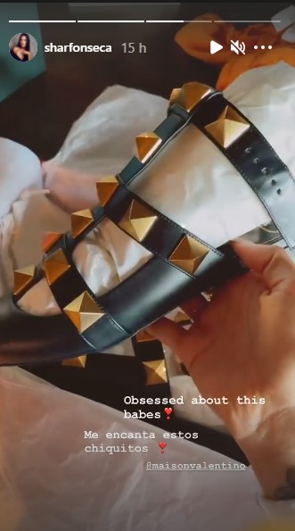 Sobre unas de las instantáneas, Sharon escribió: “Me encantan estos chiquitos”, sosteniendo en una de sus manos la sandalia para mostrar los detalles de su confección y diseño.
