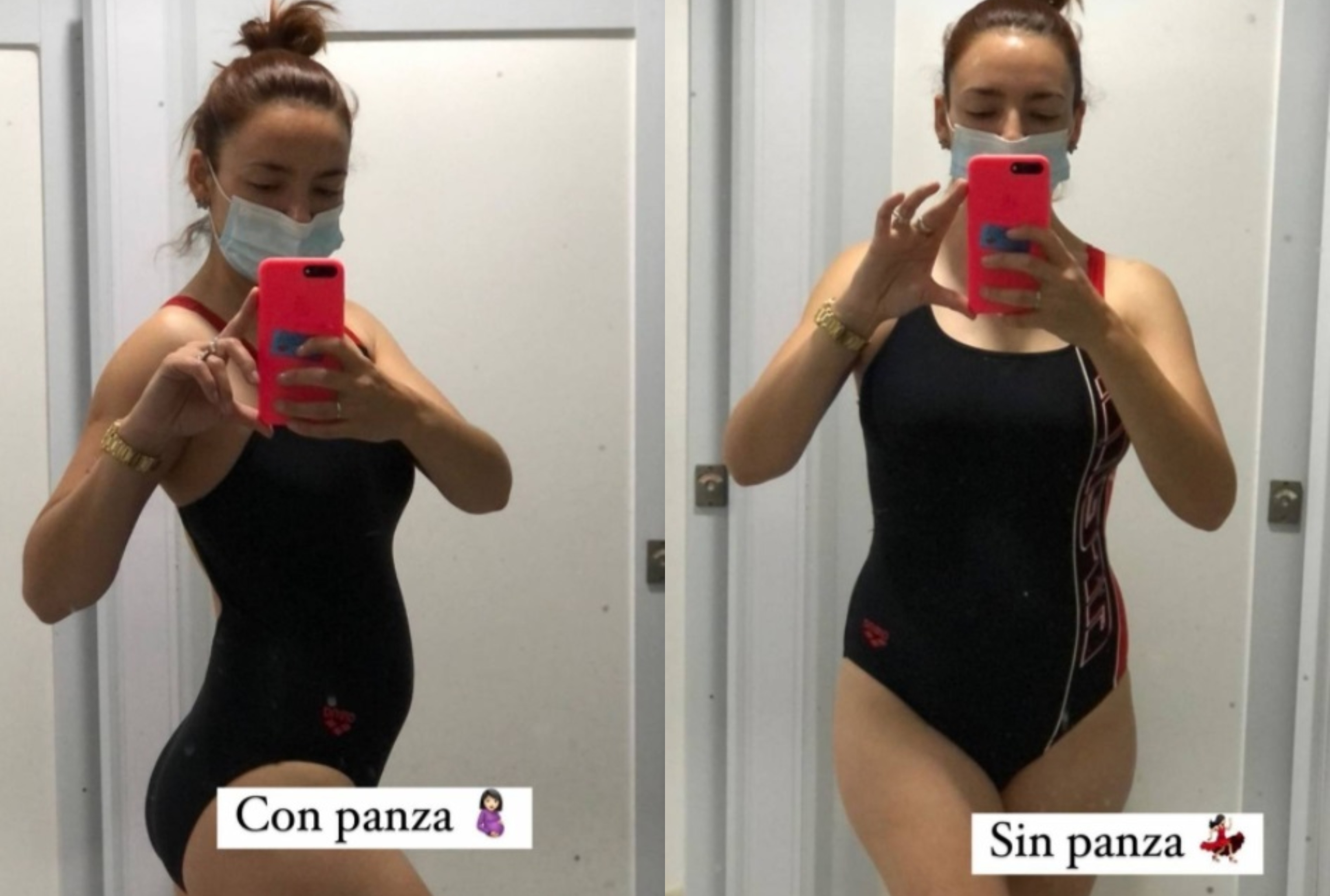 "Con panza", escribió Janis recientemente, junto a una fotografía de perfil en traje de baño previo a sus clases de natación.
