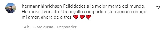 Por su lado, la pareja de Simoney y padre del bebé escribió: "Felicidades a la mejor mamá del mundo. Hermoso, Leoncito. Un orgullo compartir este camino contigo mi amor, ahora de a tres", agregando emojis de corazón.