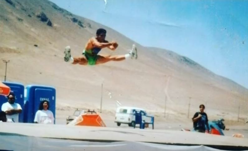 Junto con contar detalles de su juventud, Villegas también mostró una foto en la que aparece realizando un salto durante un campeonato desarrollado en Antofagasta, el año 1994.