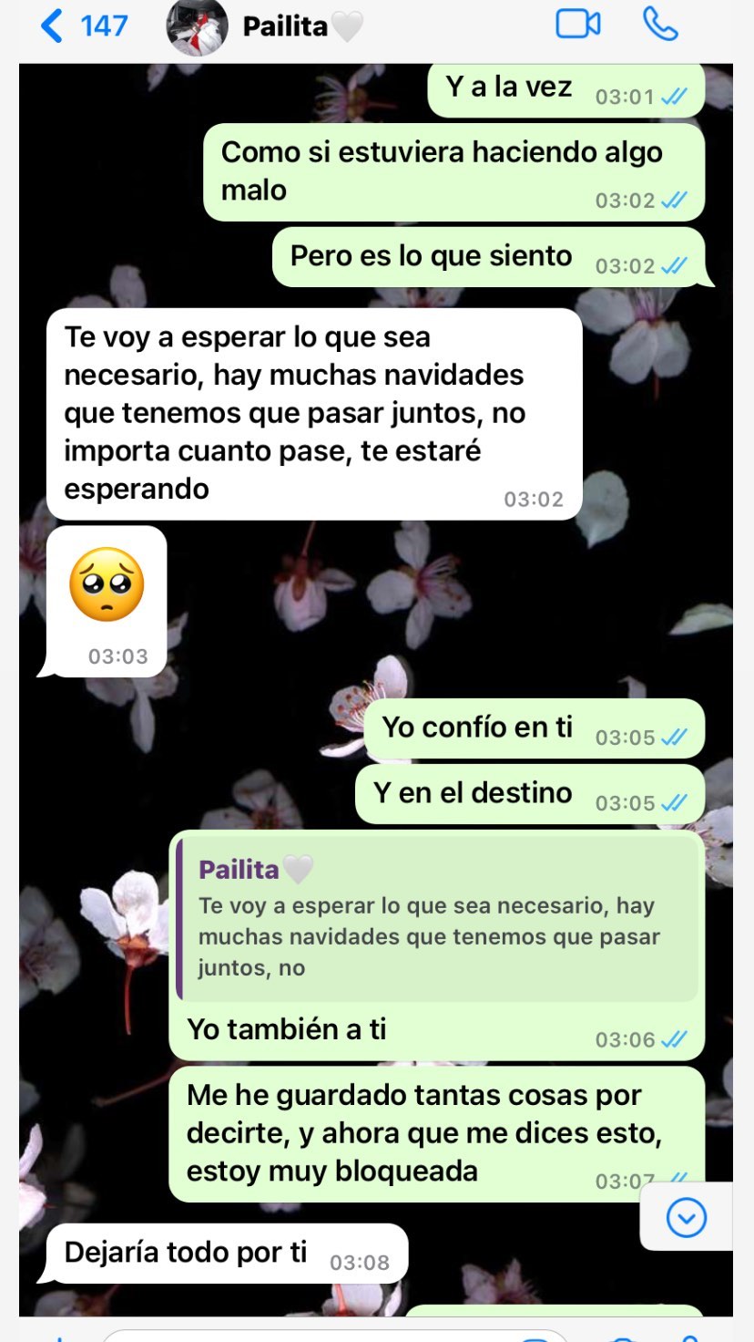 Skarleth y Pailita habían mantenido una relación amorosa mientras vivían en Punta Arenas, la cual retomaron en enero pasado. La joven subió diversos pantallazos a su cuenta de Instagram para mostrar cuando volvieron a hablar.