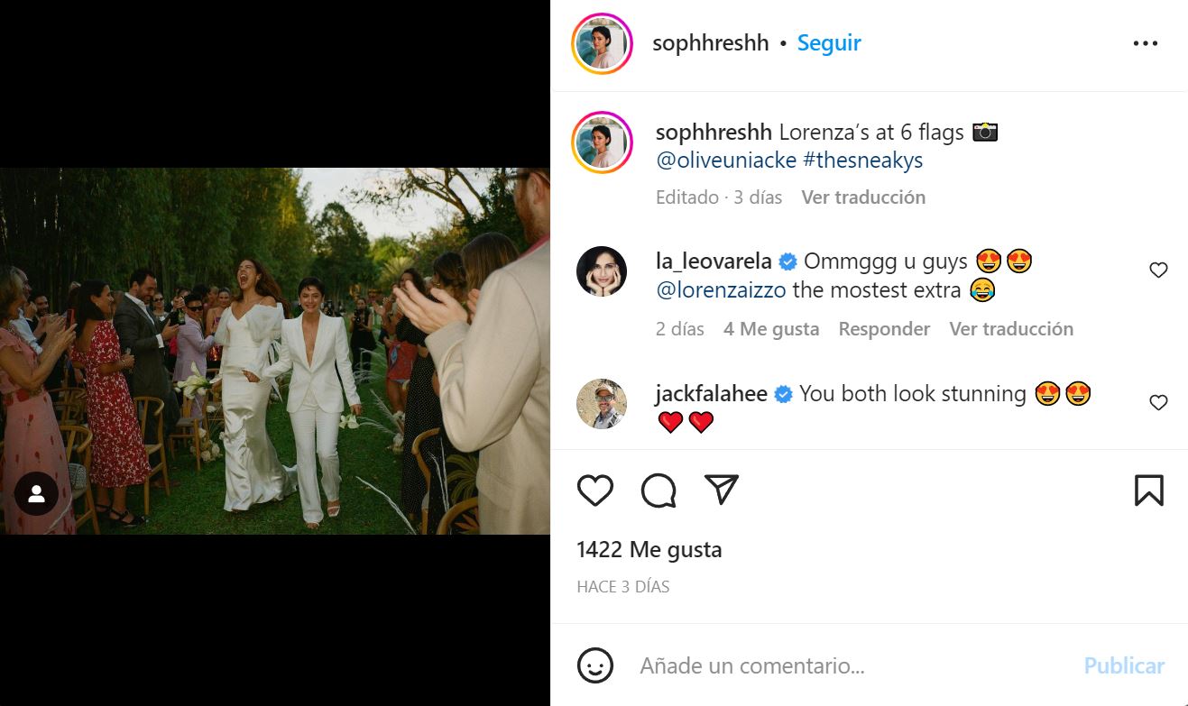 La escritora también compartió un recuerdo de ese día, acompañado de la frase: "Lorenza's at 6 flags", en la que personalidades de la música y la actuación, como Francisca Valenzuela, Lily Collins, Leonor Varela, Francisca Alegría, Hannah Einbinder, Edgar Ramirez y Emily Hampshire comentaron.