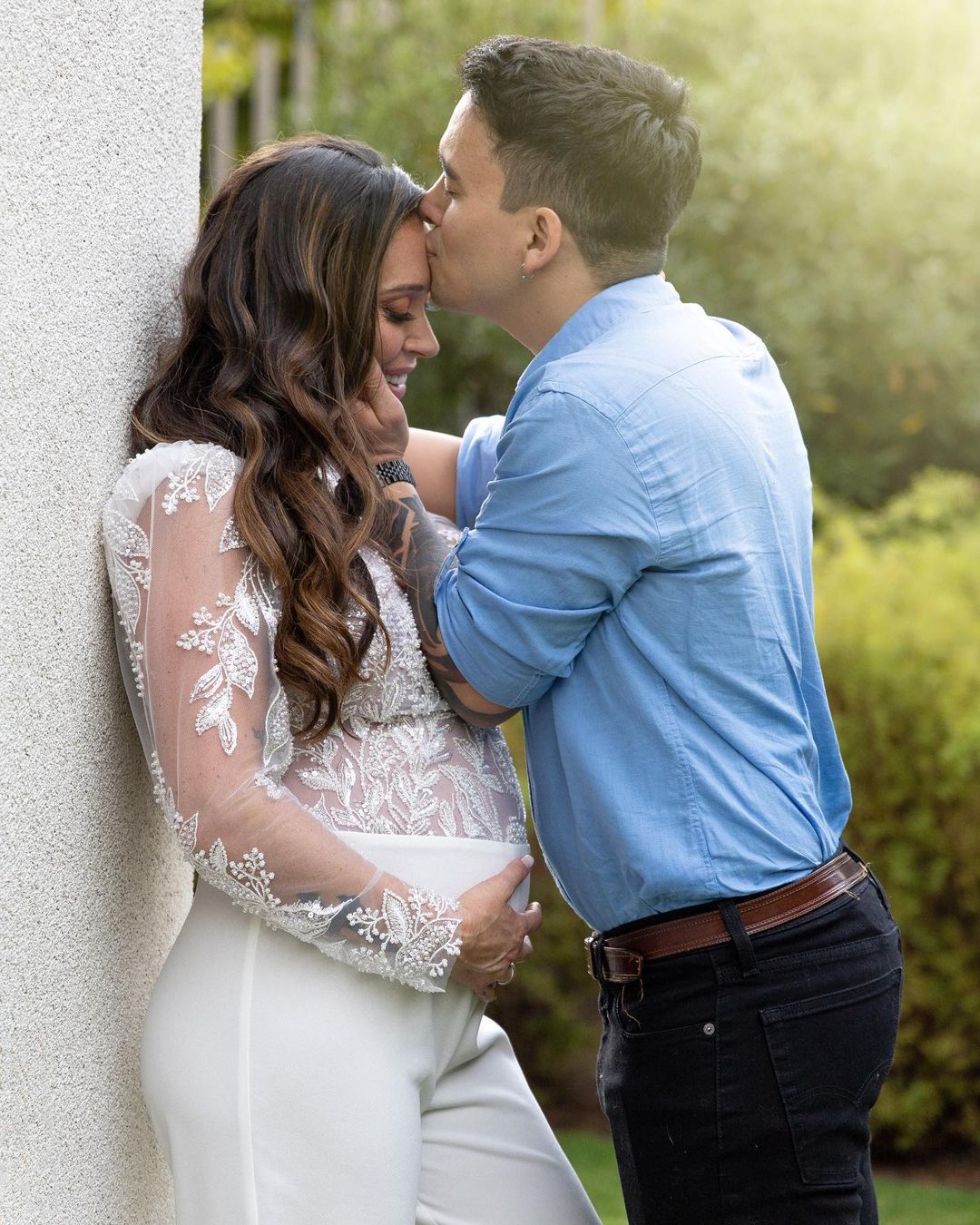 La bailarina, que tiene 28 semanas de embarazo, se casó por el civil, luciendo un enterito de color blanco y acompañada de sus familiares más cercanos.