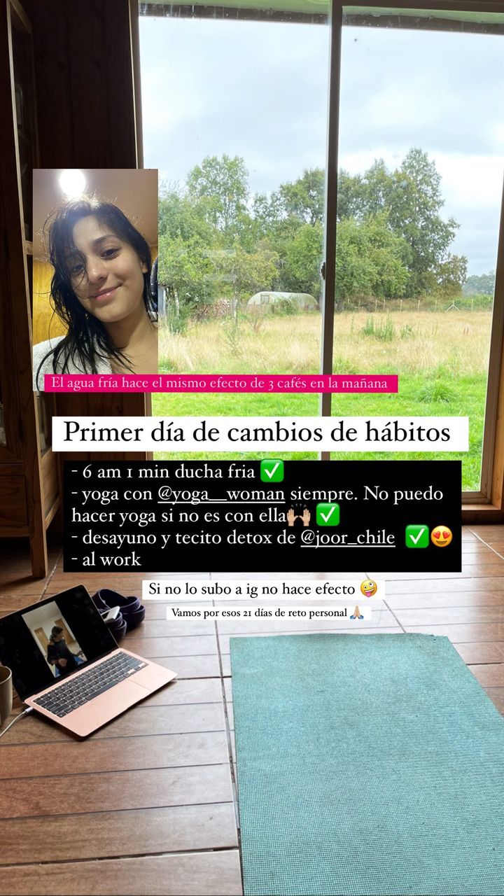 Este lunes, Rocío Toscano comenzó con cambios de hábitos y según mostró en una publicación previa, está en un reto personal de 21 días, el cual consta de darse una ducha fría por la mañana, para luego hacer yoga, desayunar y ponerse a trabajar.