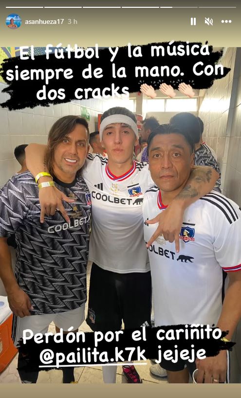 "El fútbol y la música siempre de la mano. Con dos cracks. Perdón por el cariñito Pailita, jejeje", escribió junto a la imagen.
