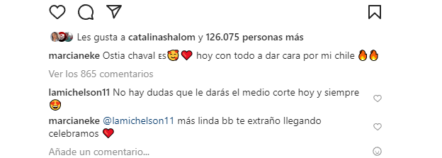Luego el artista le respondió a su polola con un romántico mensaje. "@lamichelson11 más linda bb (bebé) te extraño, llegando celebramos", señaló, añadiendo un emoji de corazón.