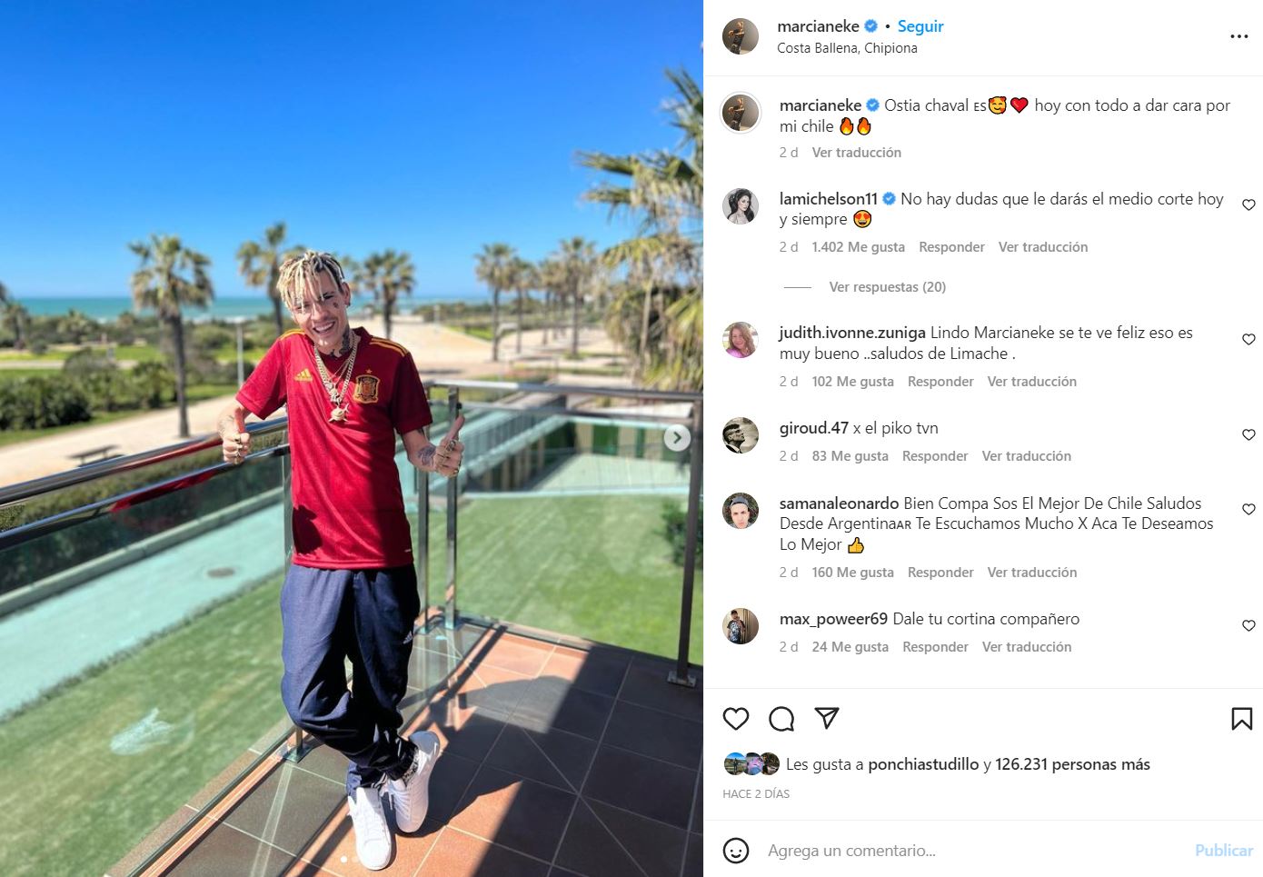 "Ostia chaval, hoy con todo a dar cara por mi Chile", escribió Marcianeke en la leyenda del posteo.