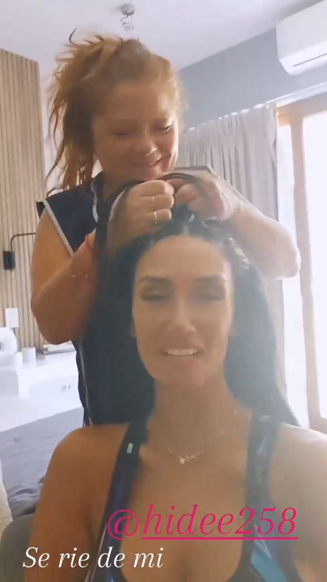 En un video que fue publicado mediante historias de Instagram, Pamela aparece sentada mientras Haydee le realiza un peinado.