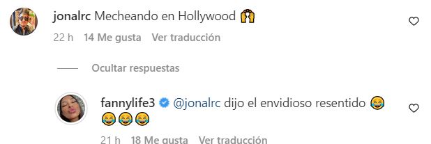 La influencer no tuvo reparos y paró en seco al desubicado usuario. "Dijo el envidioso resentido", le contestó, junto a varios emojis de risa.