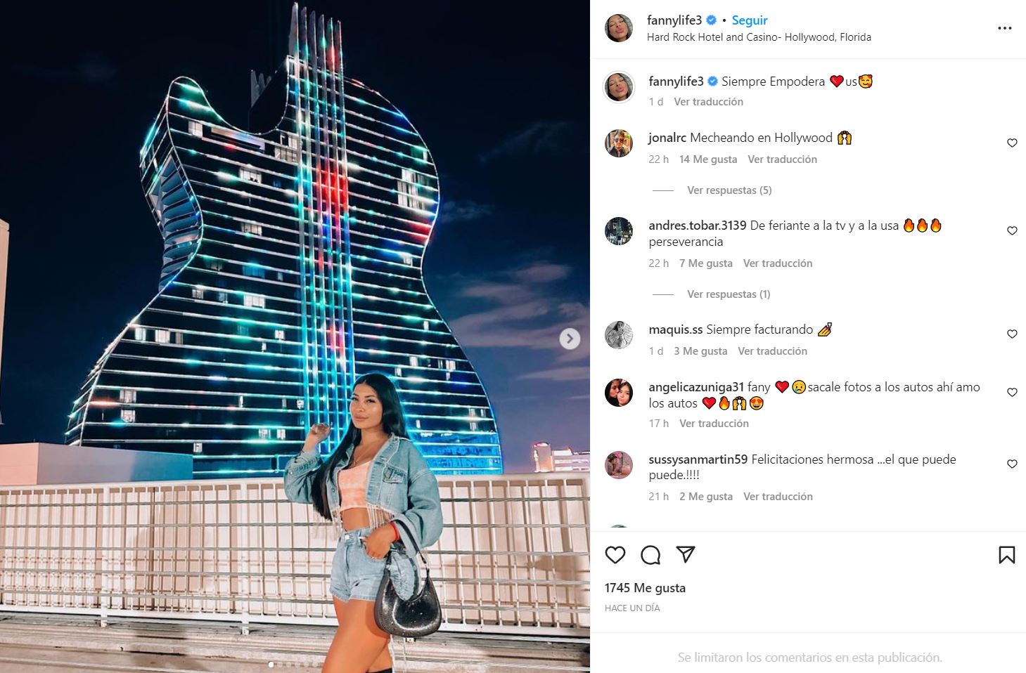 Durante los últimos meses de 2022, sus seguidores pudieron ver varias fotos de Fanny en Brasil y, ahora, la joven ha mostrado postales desde Florida.