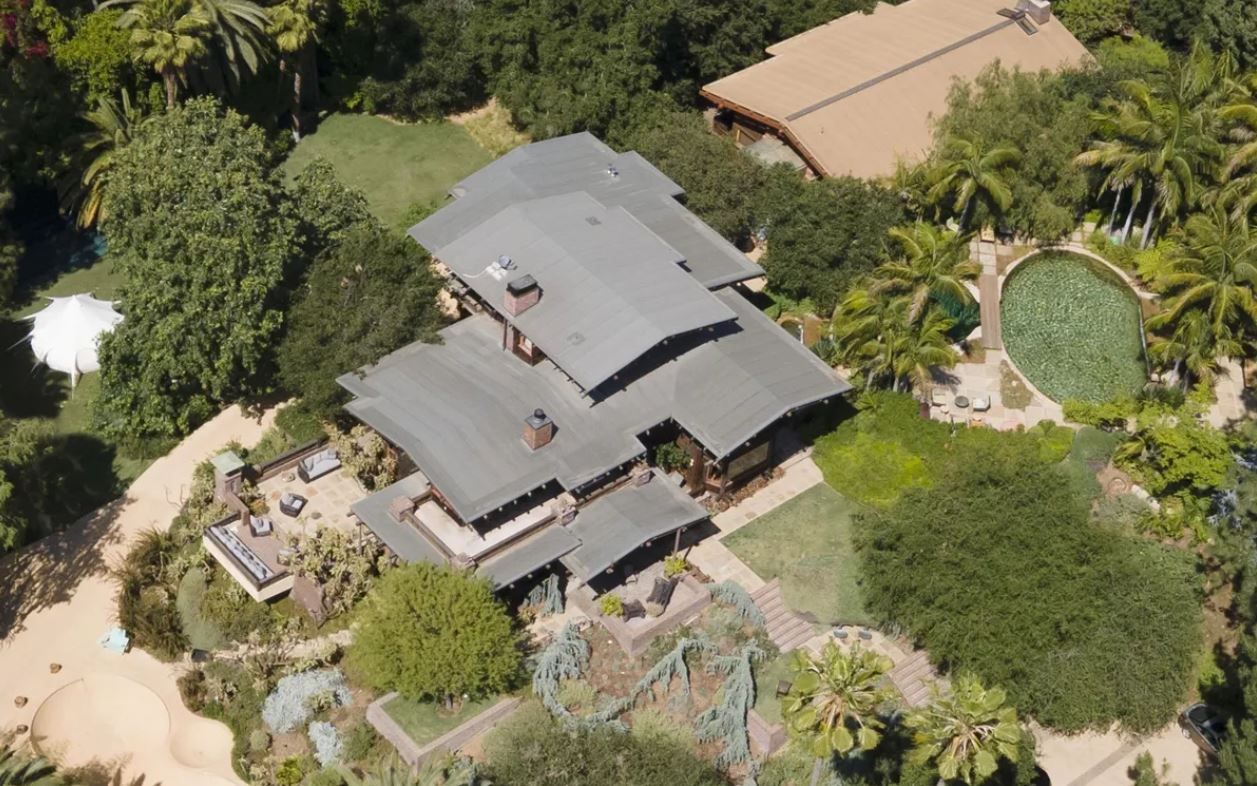La mansión está rodeada de inmensos jardines y se emplaza en la exclusiva comunidad de Hollywood Hills.
