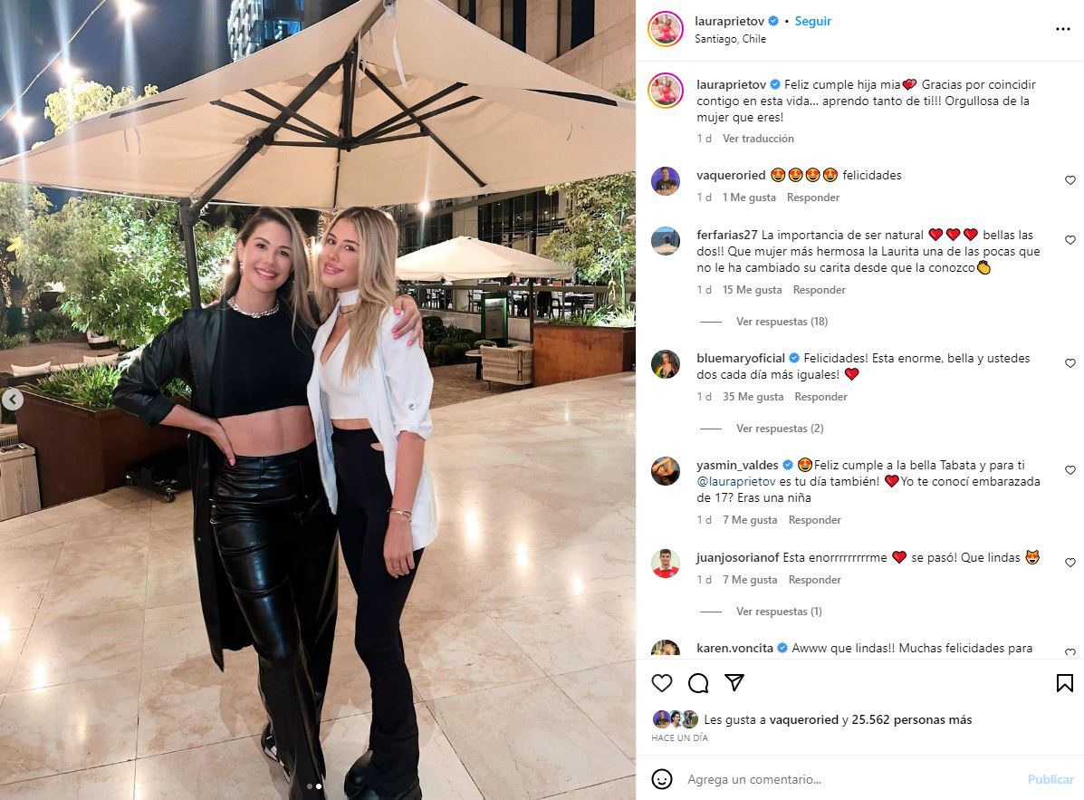 Cuando Tábata participó en el lanzamiento de su colección de carteras en 2022, Laura Prieto dijo sobre su hija que "siempre la he resguardado un montón y ahora se quiso hacer presente porque era mi evento, pero nunca le he inculcado en seguir mis pasos. De hecho, soy súper cuidadosa y trato de no mostrarla mucho en mis redes sociales".