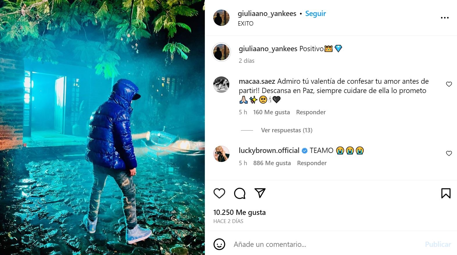Múltiples artistas del ámbito urbano se despidieron del fallecido cantante a través de sus redes sociales. Entre ellos, está Lucky Brown, quien le escribió en su última publicación de Instagram "TE AMO".