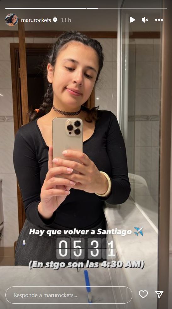 "Hay que volver a Santiago", escribió en una imagen en la que aparece frente al espejo de un baño, anticipando que se dirigiría al aeropuerto para tomar el vuelo rumbo a la capital.