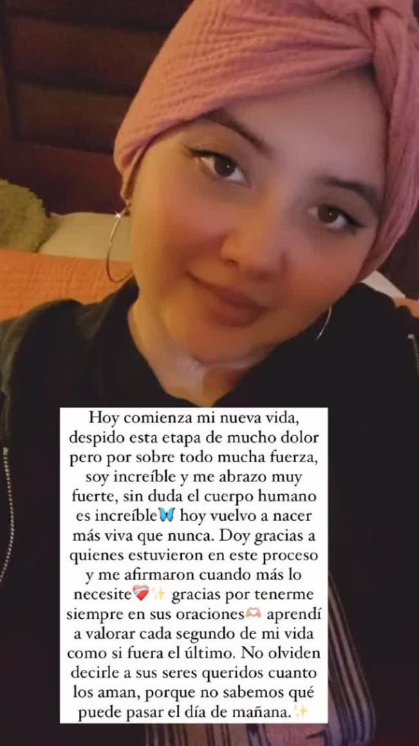 "Doy gracias a quienes estuvieron en este proceso y me afirmaron cuando más lo necesité. Gracias por tenerme siempre en sus oraciones, aprendí a valorar cada segundo de mi vida como si fuera el último", añadió.