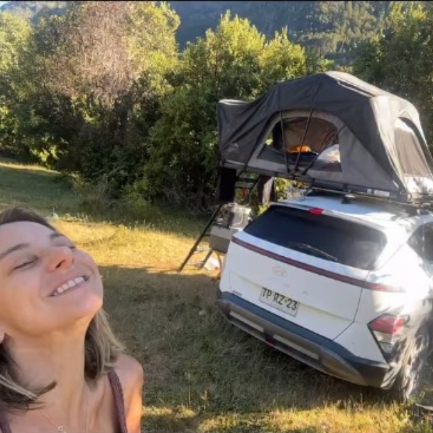 La mujer subió un video en el que se puede ver una serie de imágenes en que aparece ella acampando en un sector rodeada de árboles y con su auto, al que le incorporó una carpa en su techo.