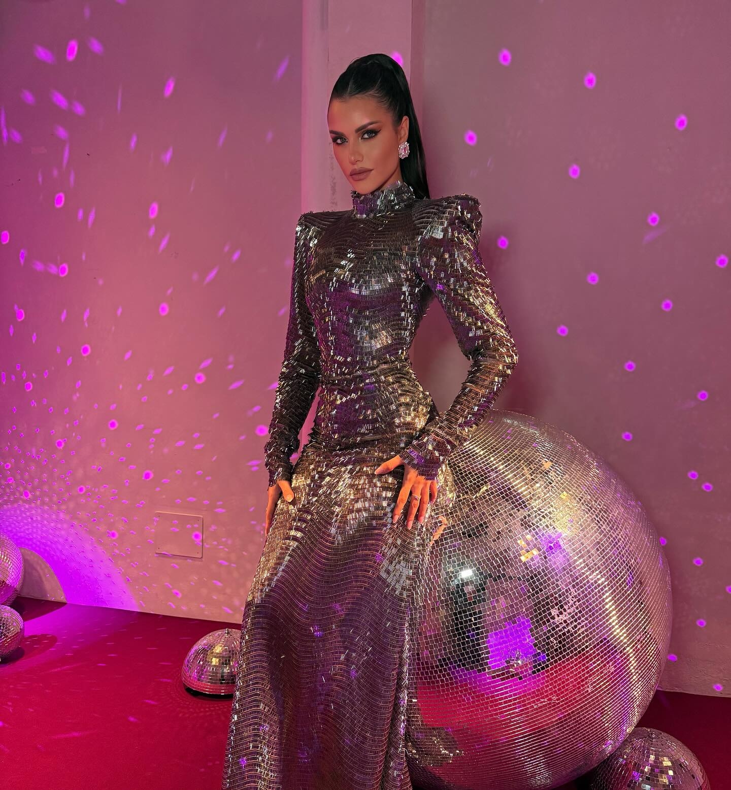 A su cuenta de Instagram, Emilia subió imágenes de lo que fue su encuentro con la actriz, y también de su participación en el evento, al cual asistió con un vanguardista vestido metalizado gris, con hombreras y mangas.