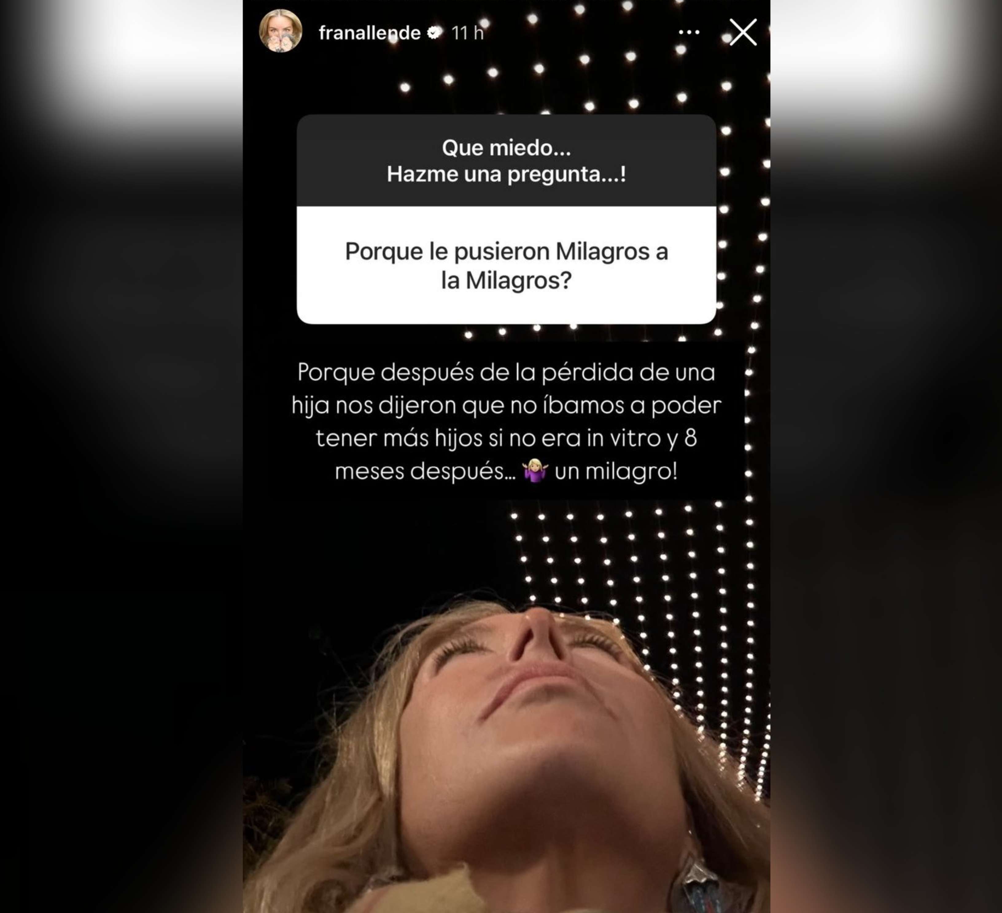 Según comentó Francisca, eligieron ese nombre por una especial razón. "Después de una pérdida hija nos dijeron que no íbamos a poder tener más hijos si no era in vitro", explicó, aludiendo al tratamiento que ayuda a tener hijos cuando las personas no pueden lograrlo de forma natural.