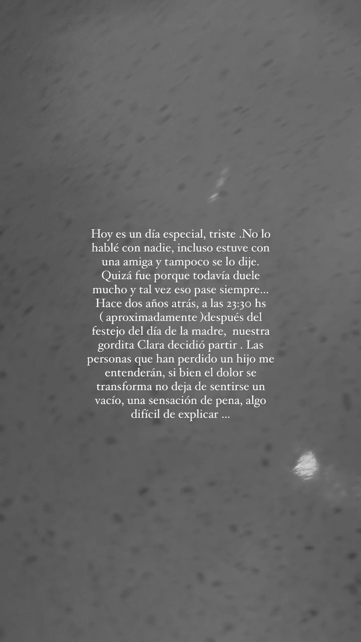 Así lo escribió mediante su Instagram, publicando una historia en la que relata con toda sinceridad cómo vivió la jornada, marcada por el segundo aniversario de la muerte de su hija, Clara, a solo minutos de haber nacido.