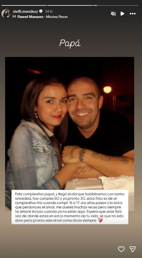 La mayor del clan Méndez escribió cariñosas palabras para su papá, las cuales compartió a través de sus historias de Instagram con una fotografía del recuerdo.