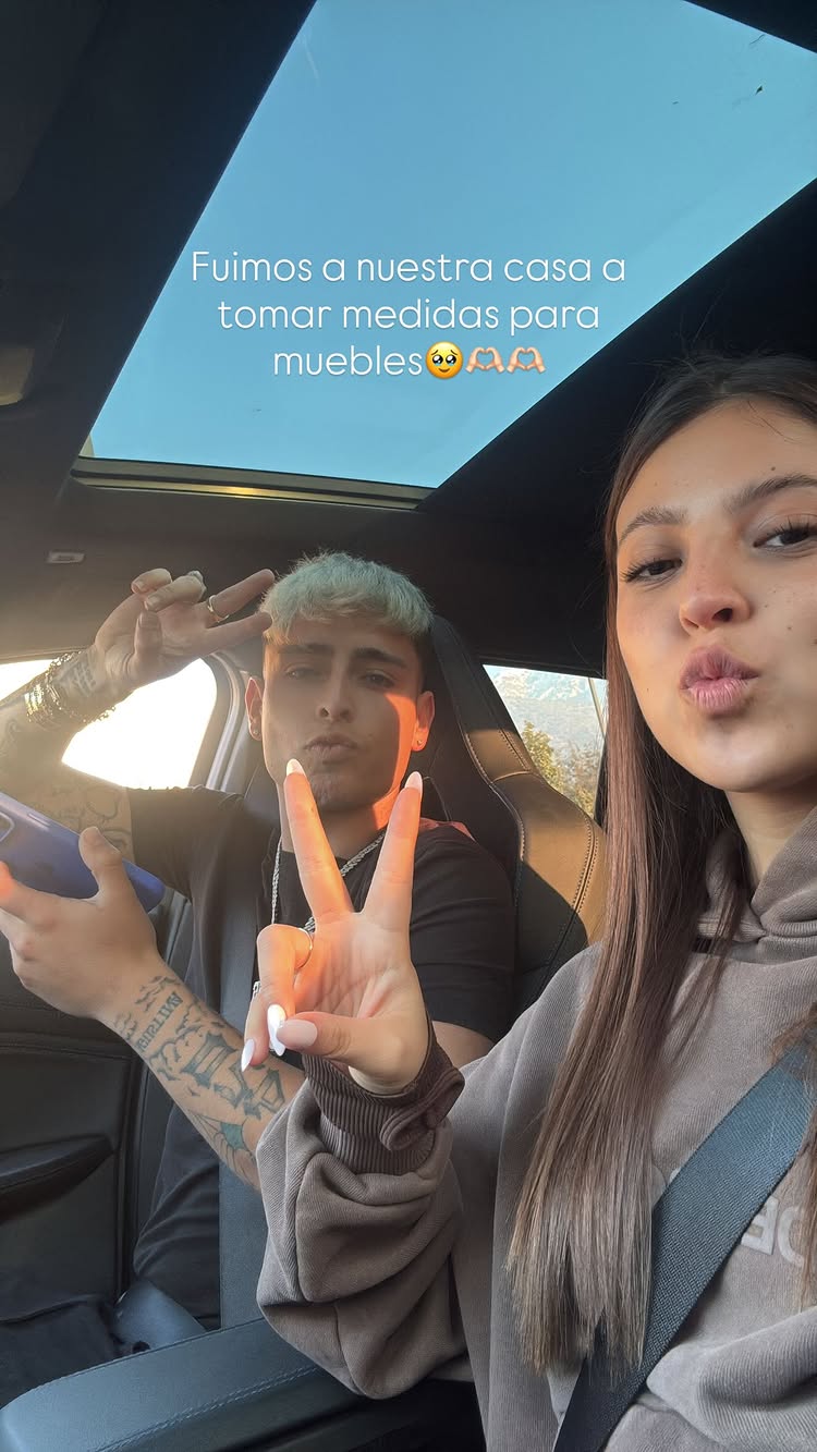 Esto porque sobre la foto dice "fuimos a nuestra casa a tomar medidas para muebles". En la imagen, tomada por Ignacia, ambos aparecen realizando el signo de paz y tirando un beso a la cámara.